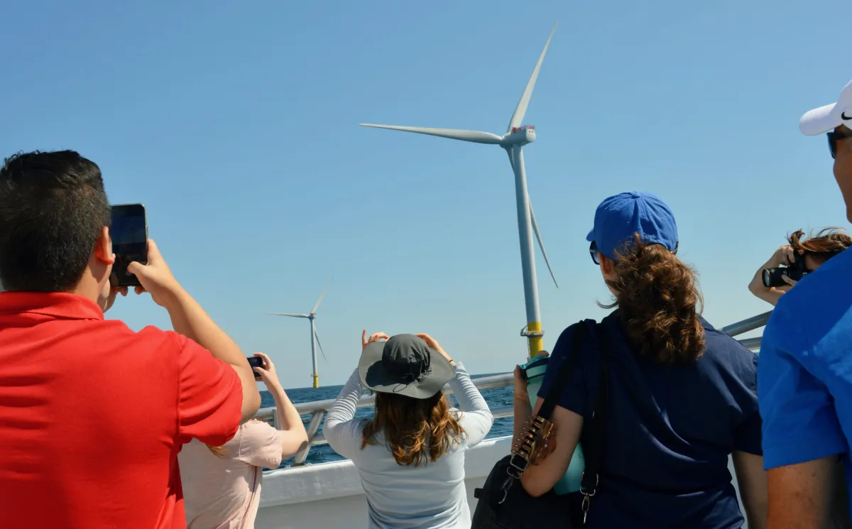 A blade alone measures 354 feet — longer than a football field. And just the visible part of each turbine is skyscraper height, stretching a soaring 800 feet from the top of the ocean to the tip of a blade pointed straight up.