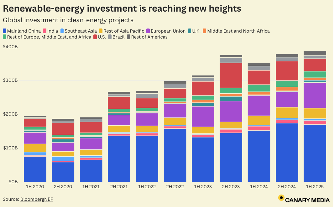 Chart: Global investment in renewables hits record even as US falters